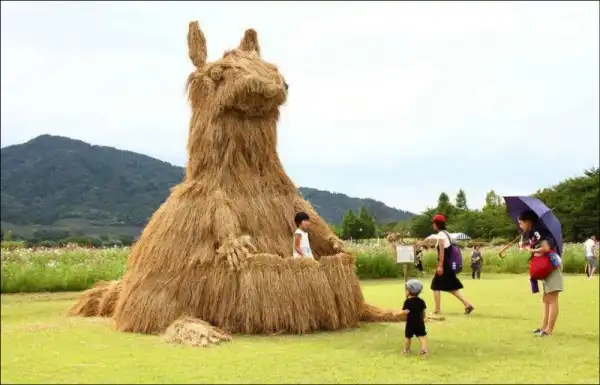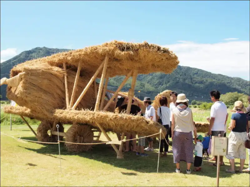 Каждый год в сельских районах Японии после уборки риса остаются груды соломы. Однажды кому-то пришла мысль использовать солому в качестве материала для скульптур.Идея была подхвачена и мастера соломенных скульптур начали проводить фестивали, выставки своих творений. Наиболее известные проходят в префектурах Кагава и Нигата.