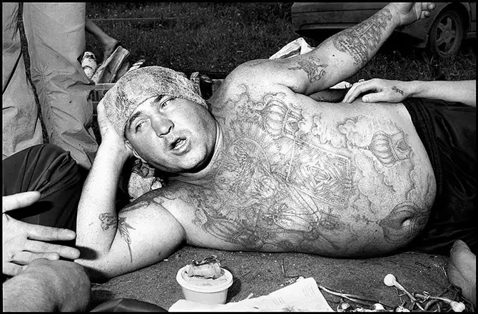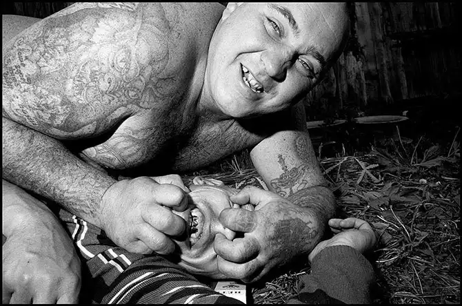 Несколько лет назад бесстрашный американский фотограф Брюс Гилден, известный своими съемками «жизни улиц», отправился на Урал. В богом забытом населенном пункте в 70 км от Екатеринбурга он обнаружил некое подобие «средневековья» – так американец характеризует жизнь бандитов из российской глубинки, с которыми ему довелось познакомиться. И это не удивительно, ведь увиденное и запечатленное на камеру Брюса способно вызвать шок не только у американца, но и у среднестатистического россиянина.