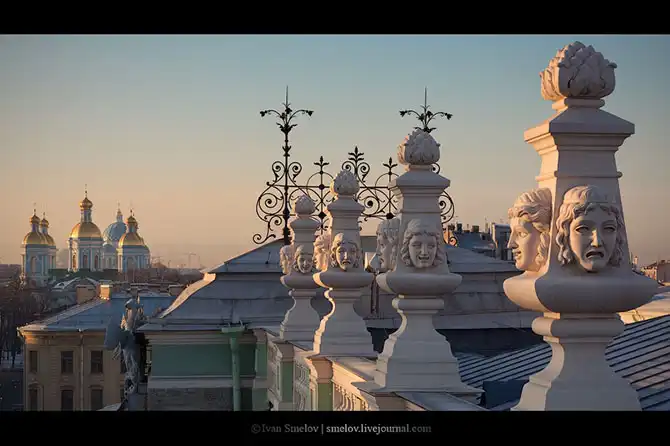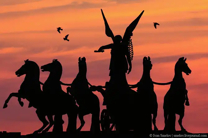 Церковь Св.Екатерины, башенка Кунсткамеры, колесница на арке Генерального штаба