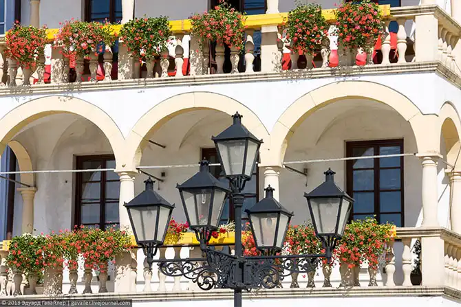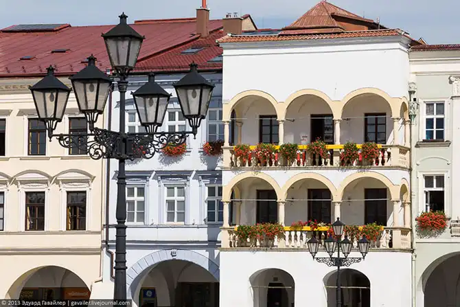 В центре города расположена квадратная площадь, обрамленная старинными домами разных стилей.