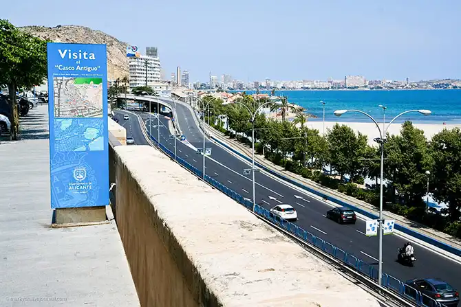 Если подняться в крепость, оттуда открывается лучший (да, наверное, единственный) панорамный вид на город. Высоких зданий с таким видом в Аликанте нет. В отличие от соседнего курорта Бенидорм, который по количеству высоток в Европе уступает только Милану и Лондону!