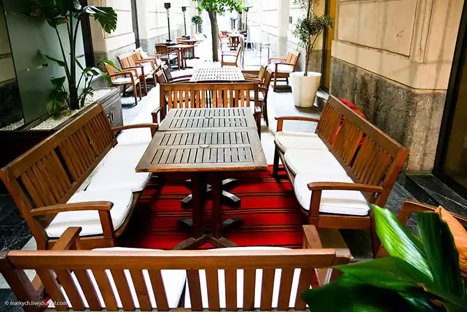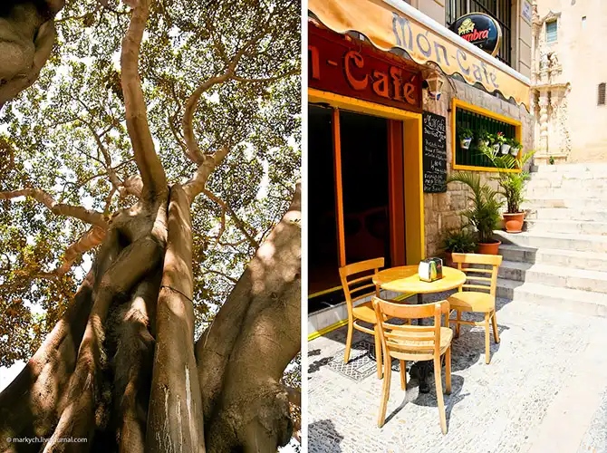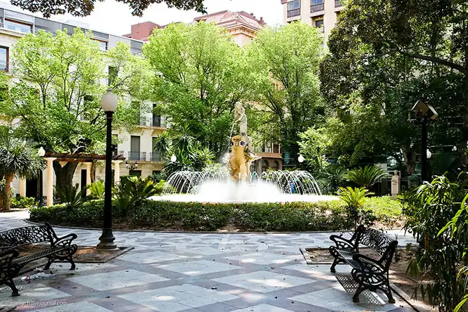 Если вы любите кофе и хотите попробовать самый вкусный капучино, зайдите в кафе 26 Lounge Bar по адресу Plaza Portal de Elche, 6. Это небольшая площадь с фонтаном, полностю укрытая кронами огромных баньянов.