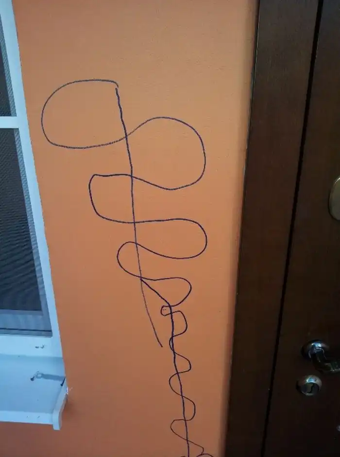 В подъезде одного дома местные дети нарисовали маркером на стене вот такую ерунду. Один из соседей не растерялся и нашел способ исправить ситуацию. Что у него получилось, смотрите под катом. Вот это я понимаю - креативный подход!)