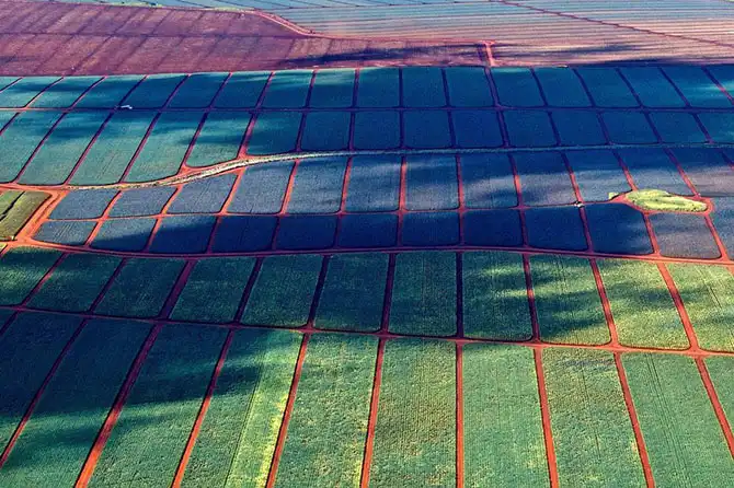 Место слияния реки Уругвай и ее притока в провинции Мисьонес, Аргентина. Одна из них очищается для нужд сельского хозяйства, другая в сезон дождей становится почти красной от глины.