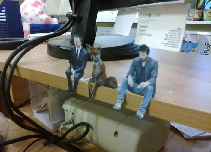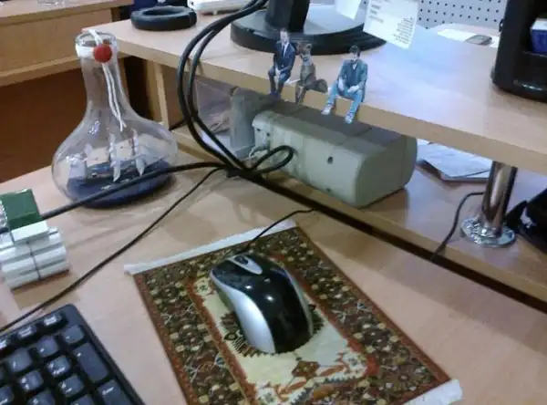 Этот офисный сотрудник точно все делает правильно, ведь как говорится, для достижения успеха по работе все должно быть "по фэншую" :) Кто-то вешает в своем автомобиле три иконки, думая, что они защитят при аварии лучше, чем подушки безопасности, а кто-то по-своему создает свою рабочую атмосферу в офисе )) У этого человека все как надо: и мышь на "правильном" ковре, и три друга всегда рядом, когда надо с кем-то посоветоваться ;) Точно идет к успеху, смотрим.
