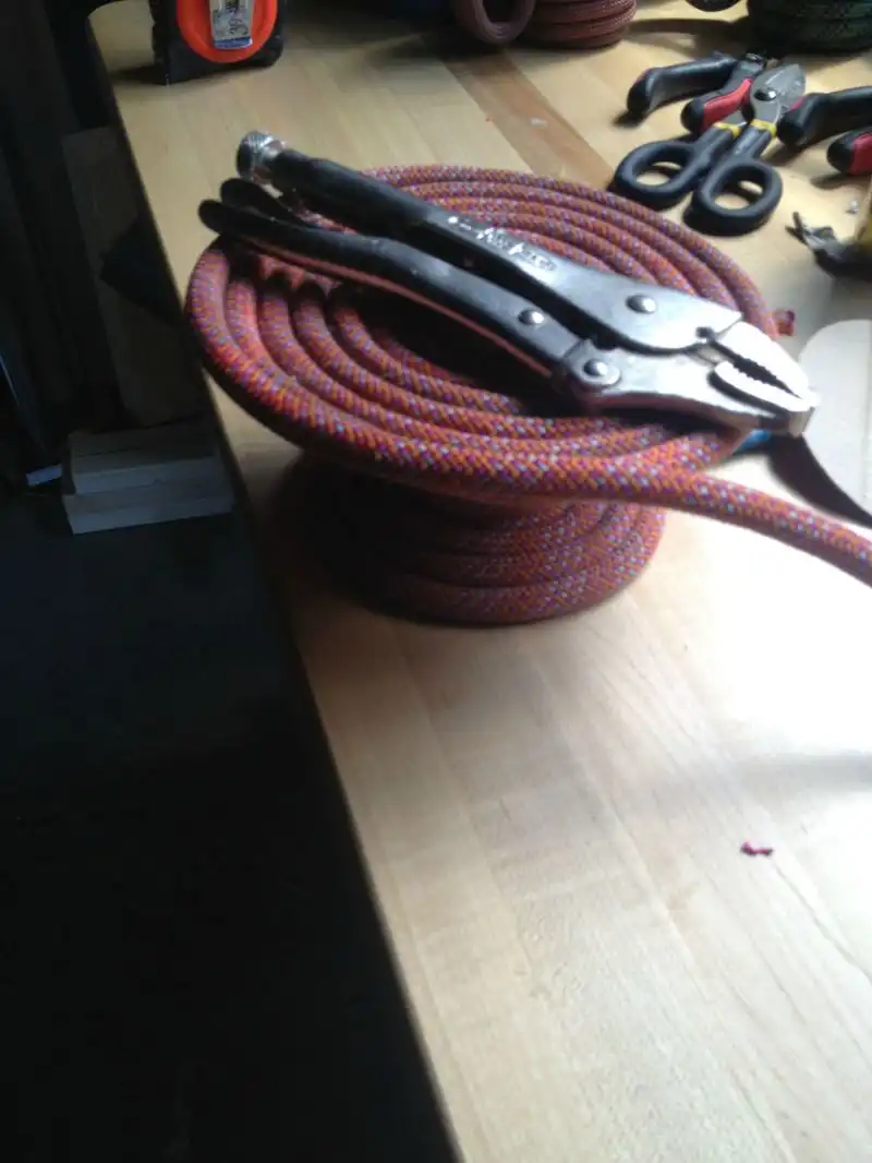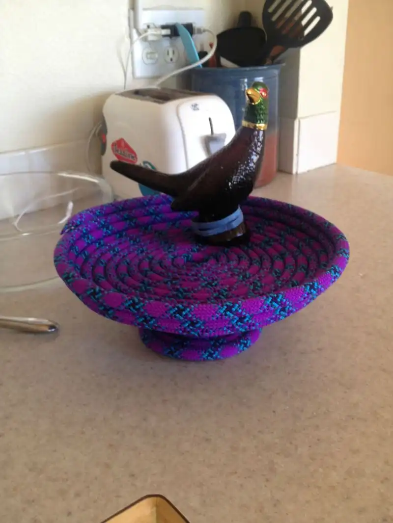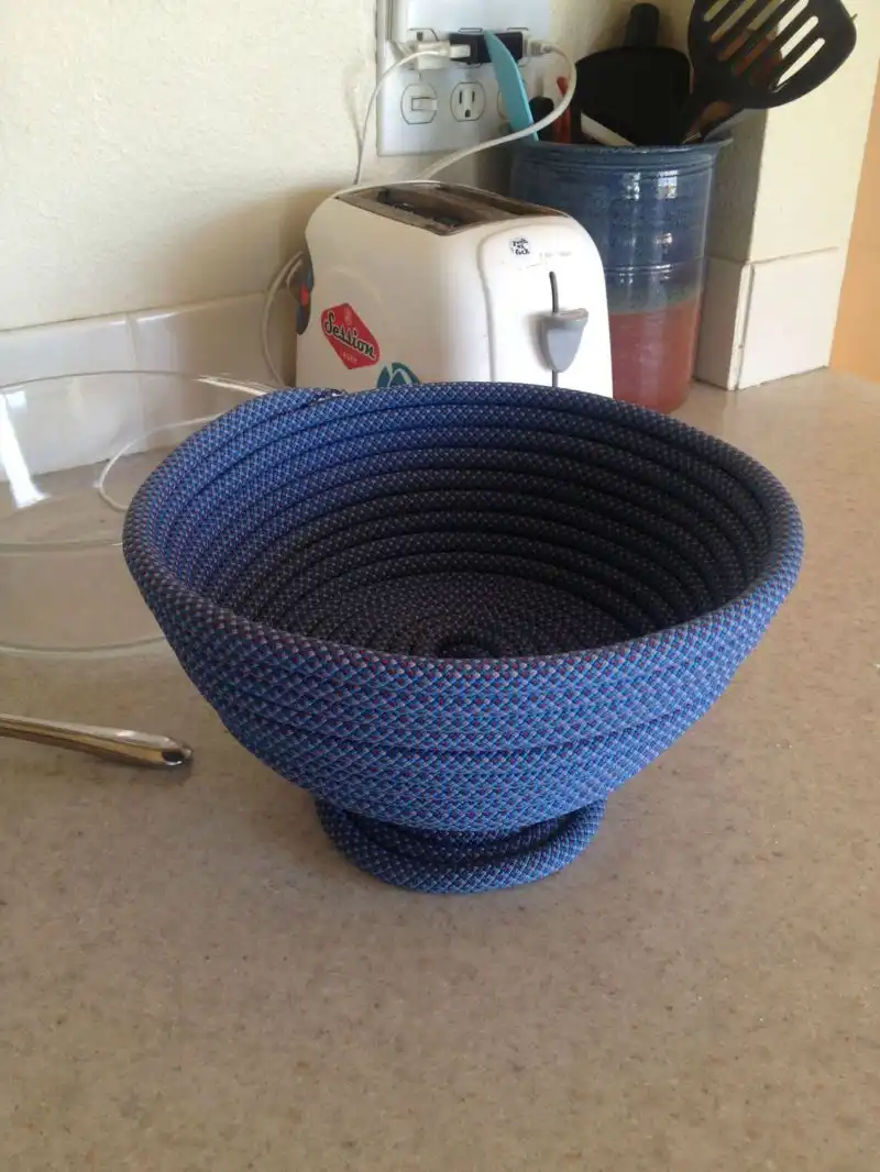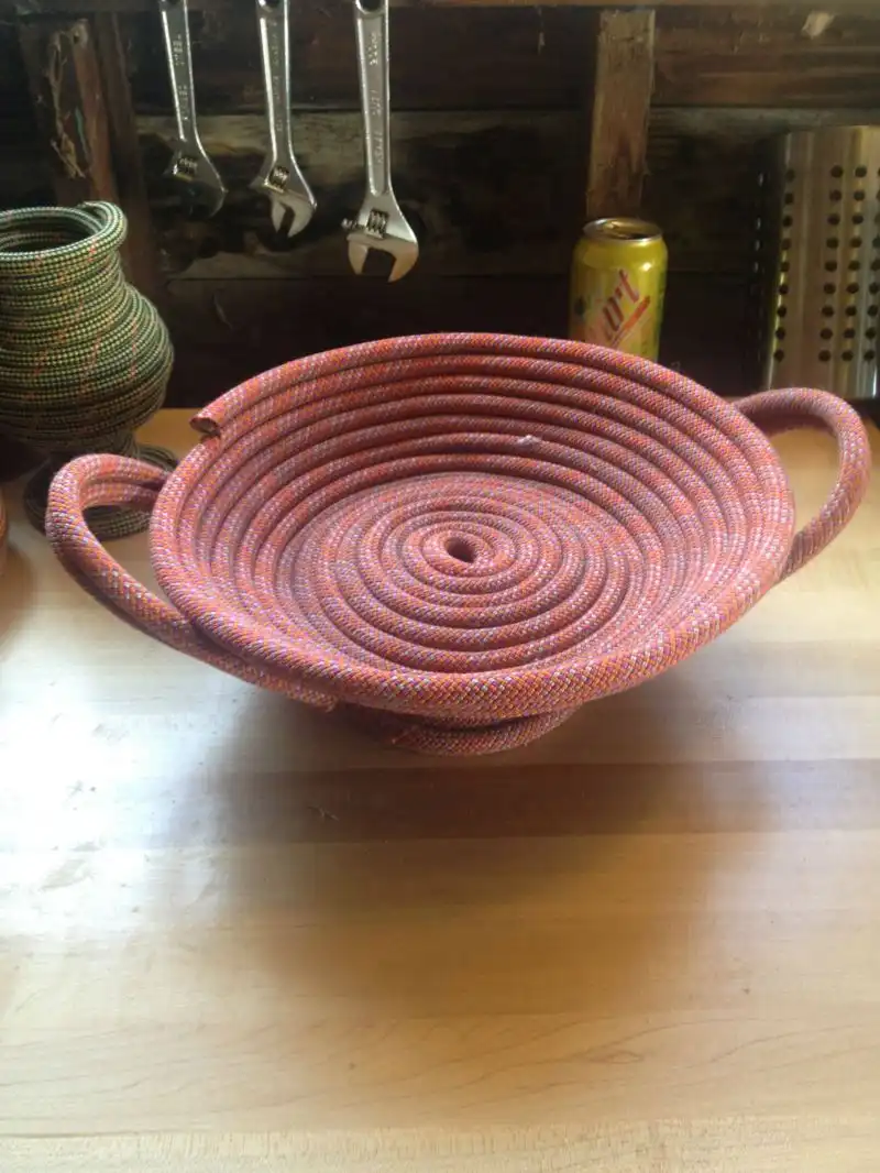 Имеем дело со случаем, когда одно хобби дало жизнь другому. У автора этих фото необычное увлечение - он делает гончарные изделия из отработавших своей альпинистских верёвок. Придавая канату нужную форму и проклеивая соединения, он делает кружки, горшки, кувшины и прочую домашнюю утварь.