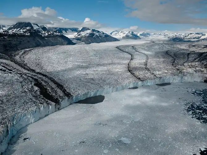 Когда фотограф Джеймс Бэлог впервые сделал снимок ледника Колумбия, тот уже отступил почти на 18 километров по сравнению с 1980 годом. Такая скорость навела Бэлога на идею проекта Extreme Ice Survey: установить камеры рядом с ледниками, чтобы задокументировать изменение климата.