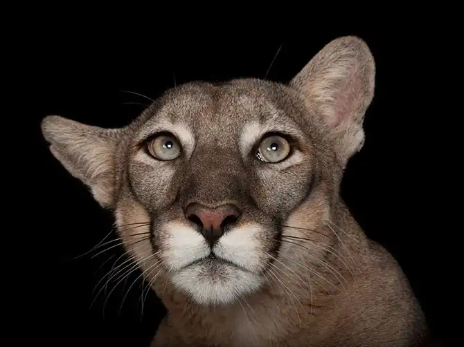 Зоопарк в Лоури-парке, Тампа. Люси подобрали в 2007 году совсем маленькой, когда мать бросила ее на произвол судьбы. В мире осталось всего 165 флоридских пум, считая Люси.