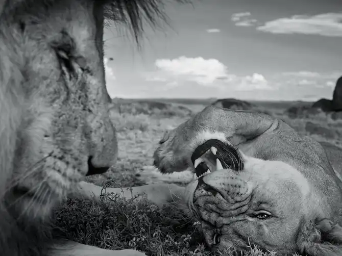 Лев Си-бой и самка из прайда Вумби отдыхают между спариваниями. Темная грива – признак силы, так что самки предпочитают самцов с темной гривой, как у Си-боя.
