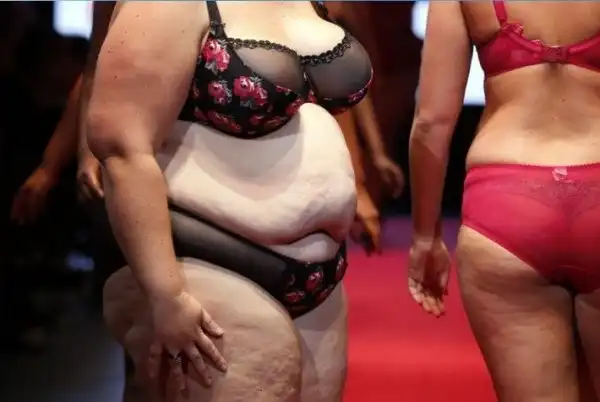 Надоело смотреть на плоскогрудых вешалок, шагающих по подиуму? Только этот показ коллекций нижнего белья и одежды от ведущих модельеров специально для вас. Во время Pulp Fashion Week в Париже новинки моды демонстрировали тучные непрофессиональные модели. Как вам?