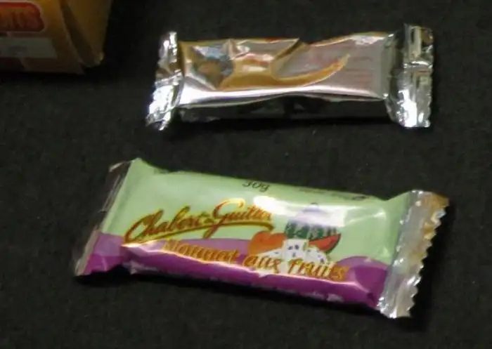 В этой упаковки находится: пакетик чая, перец, соль, какао, кофе и сахар. Ниже черный шоколад. Еще ниже конфеты, напоминают ириски золотой ключик