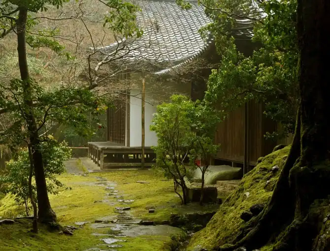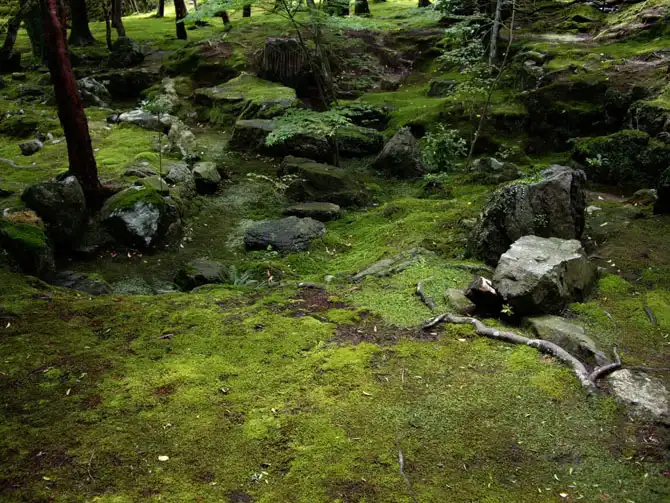 Множество привлекательных садов мха можно увидеть в Киото – древней столице Японии, где окружающие город горы обеспечивают постоянную влажность, а продолжительные летние сезоны дождей создают благоприятные условия для роста и выживания мхов. Возможно самый знаменитый среди всех «кокедера» или храмов мхов – храм Коинзан Сайходжи (Koinzan Saihoji), расположенный у подножия горы Коинзан на западе Киото.