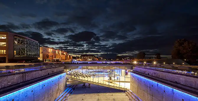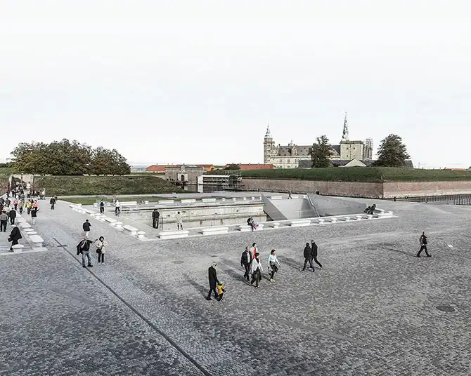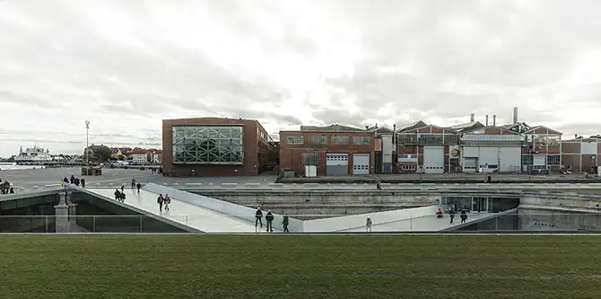 Архитектурное бюро BIG (Bjarke Ingels Group) реализовало масштабный проект Национального морского музея в датском городе Хельсингер. Новый корпус музея расположен рядом с замком Кронборг — исторической достопримечательностью, занесенной в список объектов Всемирного наследия ЮНЕСКО. Прославленный благодаря шекспировскому «Гамлету», замок привлекает множество туристов, что делает расположение музея крайне выгодным.