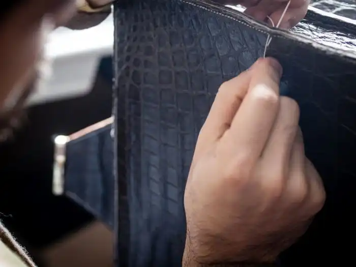 Интересный фотоотчет о том, как вручную производятся дорогостоящие сумки и портфели из натуральной крокодильей кожи.