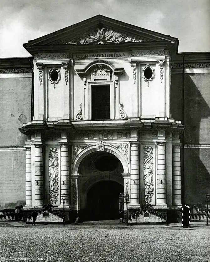 Так эта пристроенная к башне Кремля церковь выглядела пока ее не снесли в 1932 г.