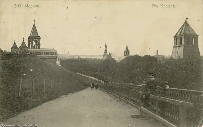 К XX веку население Кремля, конечно, несколько поредело, но все равно Кремль оставался полноценным районом города, все ворота были открыты, а Тайницкий сад был одним из любимых мест для неспешных прогулок с красивым видом.