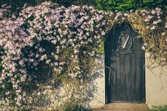 Глендалу, Ирландия. Очень, кстати, характерная для острова дверь. Цветы, арфа. Всё как полагается.