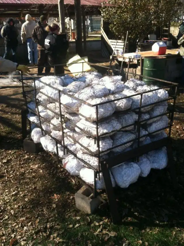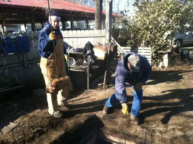 Каждый год эта семья предлагает соседям и знакомым бесплатно приготовить индейку и ветчину в подземной яме, время приготовления 23 часа. Они готовят сотни индюшек на день Благодарения, Рождество и Пасху. Вот несколько фотографий этого процесса.