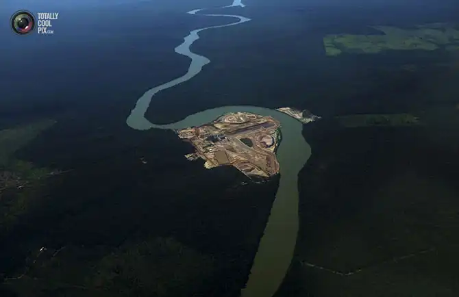 Строительство гидроэлектростанции на реке Телис-Пирис, которая является притоком Амазонки, недалеко от города Алта-Флореста, 19 июня 2013 года.