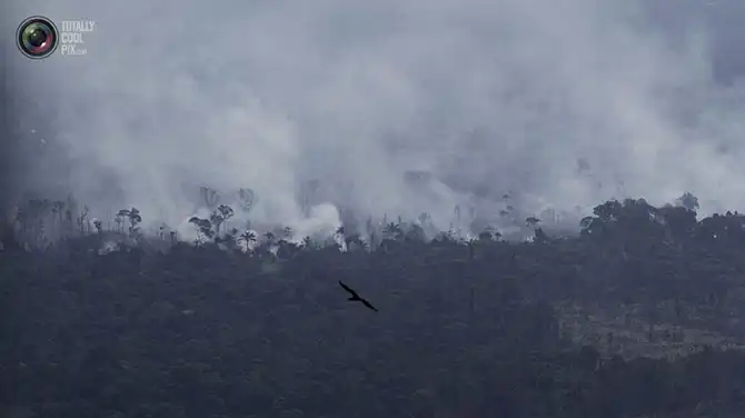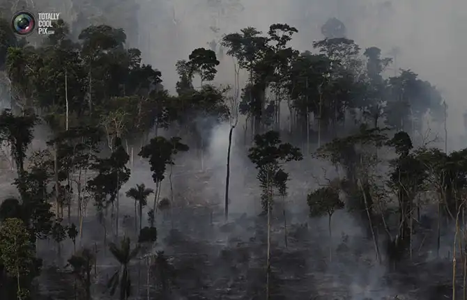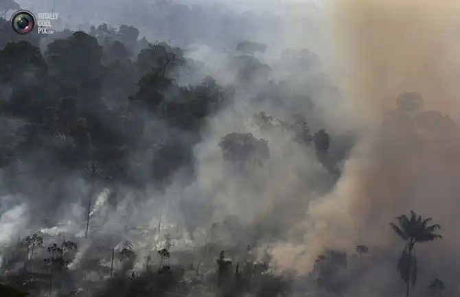 Сжигание дождевых лесов Амазонии в муниципалитете Нову-Прогресу, Бразилия.