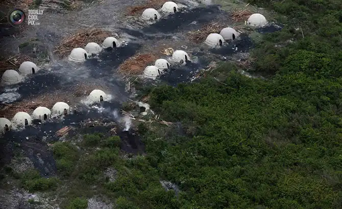 Печи для изготовления древесного угля в муниципалитете Нова-Эсперанса-ду-Пирия, штат Пара, Бразилия.