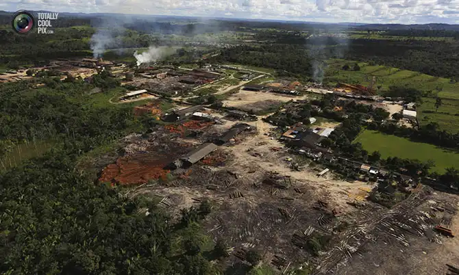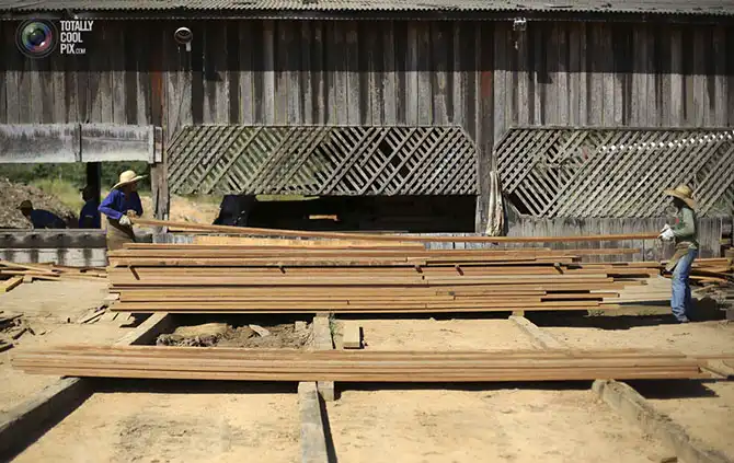 Лесопилка для обработки нелегально вырубленных деревьев в муниципалитете Уруара, Бразилия.