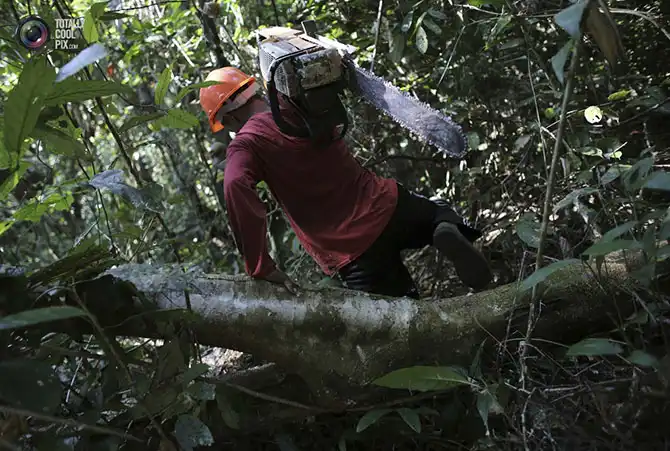 Нелегальный лесоруб промышляет в девственных дождевых лесах Амазонии недалеко от города Мораис Альмейда.