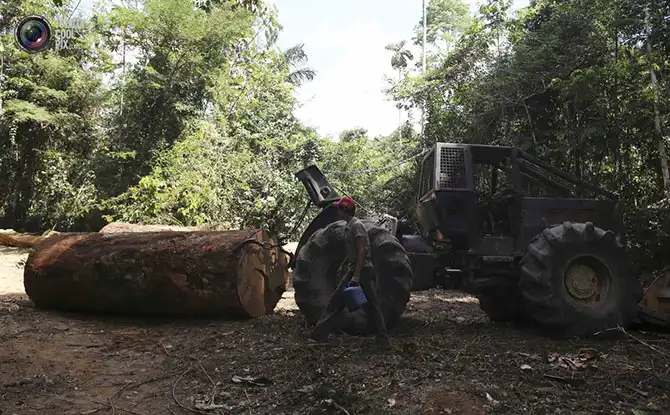 Техника для транспортировки нелегально срубленных деревьев в национальном парке Жаманшин в муниципалитете Нову-Прогресу, Бразилия.