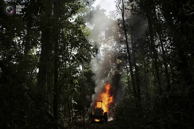 Техника для транспортировки нелегально срубленных деревьев, уничтоженная полицией.