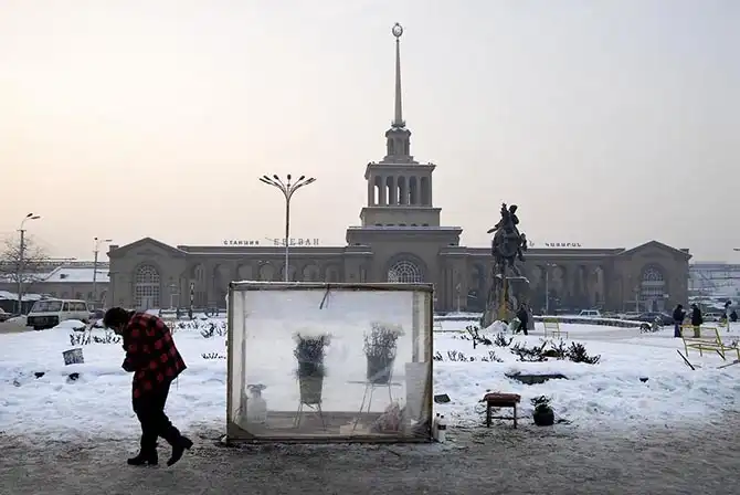 Все фотографии этой серии были сделаны в течение одного года во время путешествий по бывшим советским республикам. На снимках можно видеть, как новоявленные государства пытаются определить свою национальную идентичность после крушения коммунистической империи. Территория контрастов, на которой хватает и богатства и и нищеты. Бурное обновление городов, на фоне которых еще больше выделяется обездоленность окрестностей, позолоченные образы новых диктаторов в интерьерах увядшего могущества.