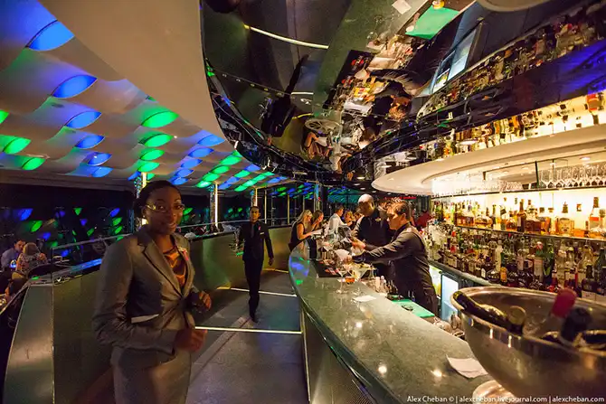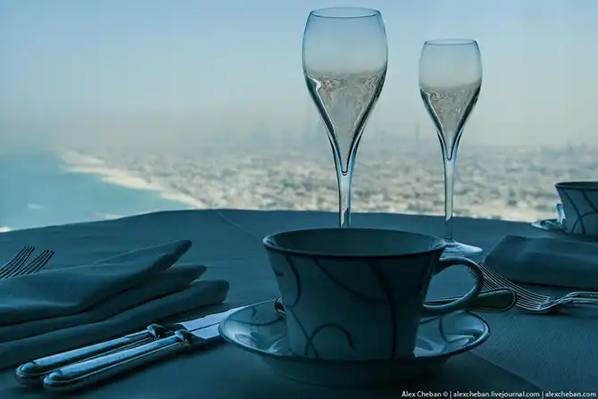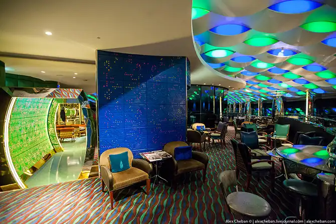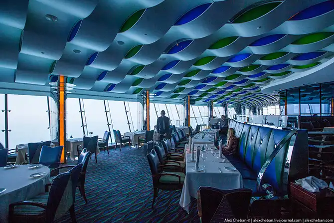 Стеклянный панорамный лифт, скользящий по морской грани знаменитого «дубайского паруса» Бурдж Аль Араб, золотой холл и футуристический коридор в матрицу… Это ресторан SkyView, который впечатляет снаружи и выносит мозг внутри. 200м над уровнем моря или 27й этаж гостиницы. Обожаю видовые рестораны и бары, здесь вид на Персидский залив днем или огни Бурж Халифы ночью. Неспешный бокал шампанского в баре с таким видом – это и есть Дубай! Одно из мест, которое передает настроение города – хайтек и стиль.