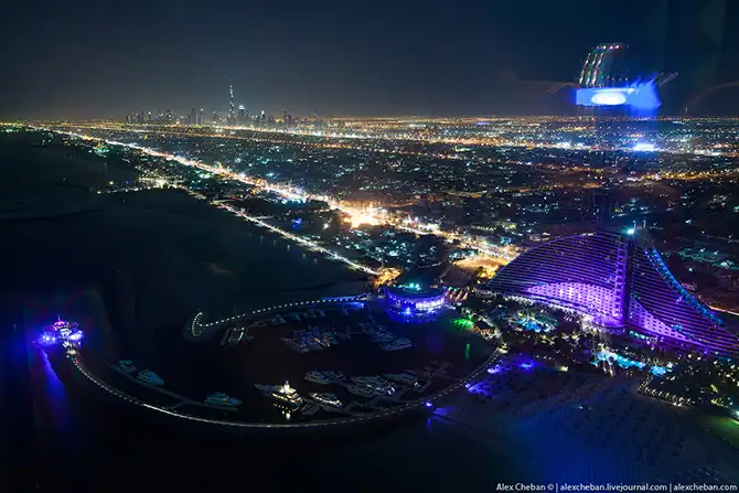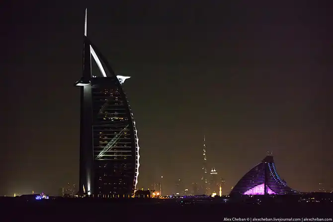Отель «Мадинат-Джумейра» слева, а справа на дальнем плане район Дубай Марина. Там я поднялся на одну интересную крышу, покажу фотографии скоро