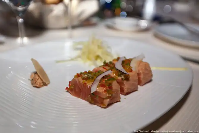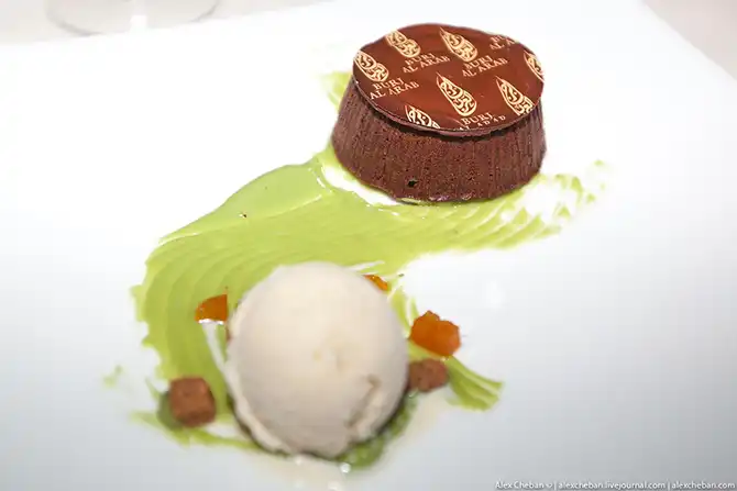 Обязательным блюдом любого ресторана в этом отеле являются позиции с золотом. Вот, к примеру, суп с золотом. На вкус суп как суп, при этом перед подачей официант посыпает его золотом. Конечно же стоимость такого блюда взлетает в разы.
