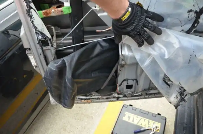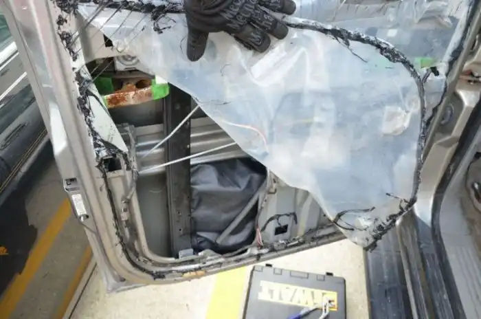 У одного парня из сети перестал работать электростеклоподъемник на задней двери его подержанного джипа. Он решил собственноручно починить его, но для этого требовалось снять дверную карту и обшивку с двери. Он был очень удивлен, когда внутри двери обнаружился странный черный пакет.