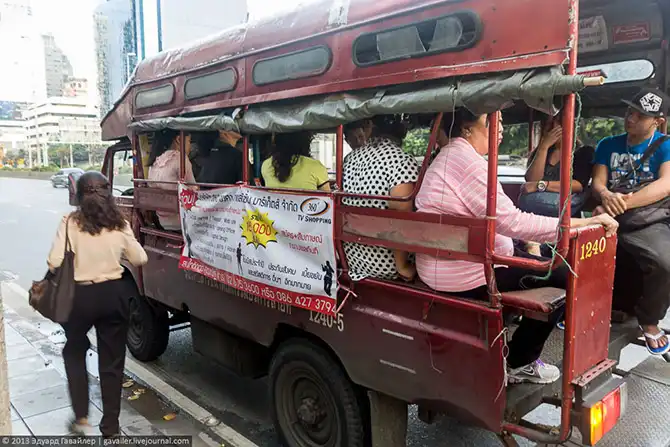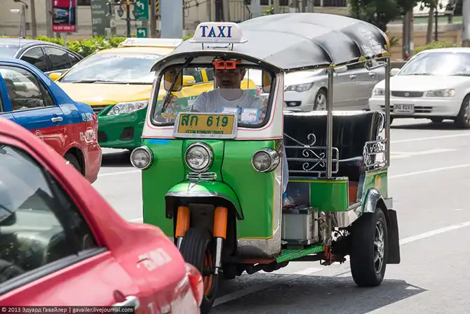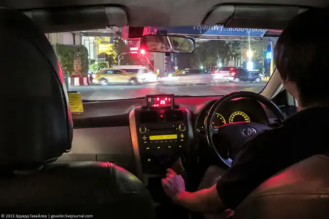 В основном таксисты, пойманные на улице, пытаются провезти пассажиров с отключенным таксометром. Таких желательно избегать, чтобы не переплатить двойную цену. В нормальном такси (останавливайте машины с надписью TAXI-METER) минимальный проезд около 35-50 бат. На английском таксисты говорят неважно.