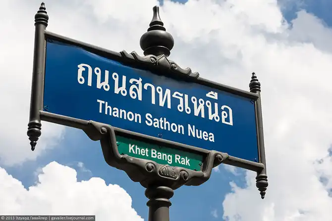 Такие стоят не везде, а узоры тайского алфавита обычно не помогают в определении местоположения. В сложных случаях помогает навигация в телефоне, но приятнее всё-таки обычное общение с местными.