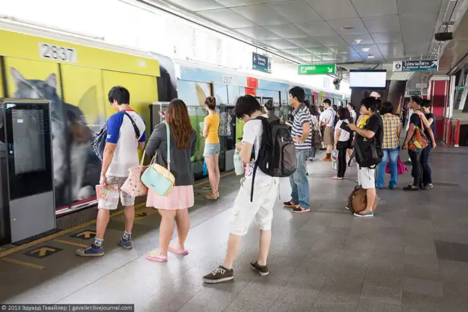 В метро покупаются билеты только в одном направлении, нет вариантов на весь день. Одна поездка 20-30 бат. Деньги считать очень просто: 1 бат равен 1 рублю.