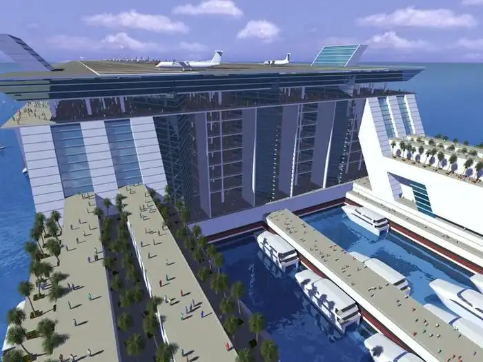 Американская компания из Флориды представила публике разработки своего концептуального плавающего города под названием "Корабль свободы". На его борту смогут с комфортом разместиться около 50 тысяч человек, а на территории судна можно будет увидеть казино, картинную галерею, парк, торговый центр и всё необходимое для комфортной автономной жизни. По предварительным данным, стоимость "Корабля свободы" будет составлять примерно 10 миллиардов долларов.