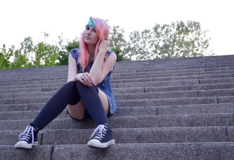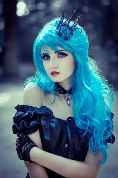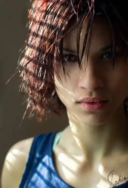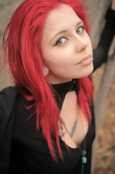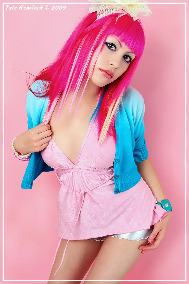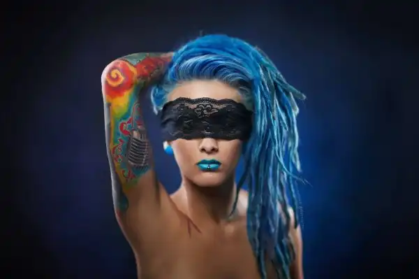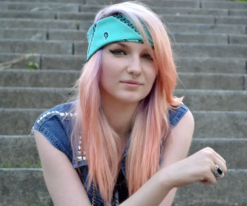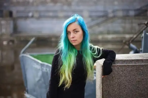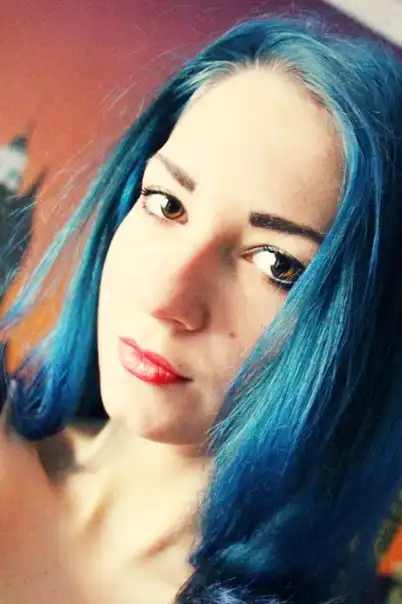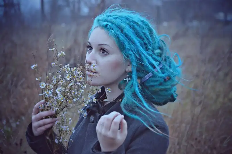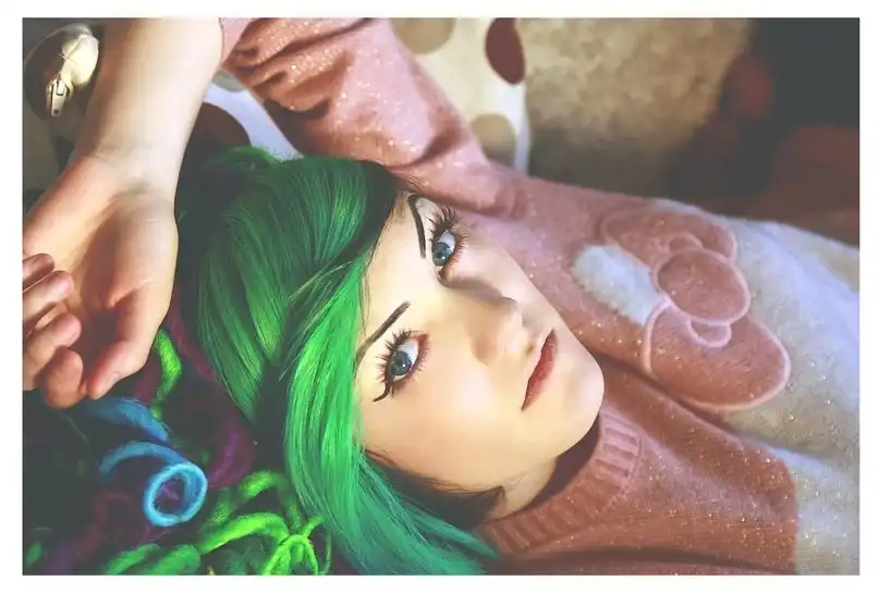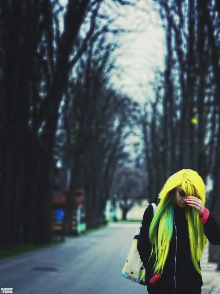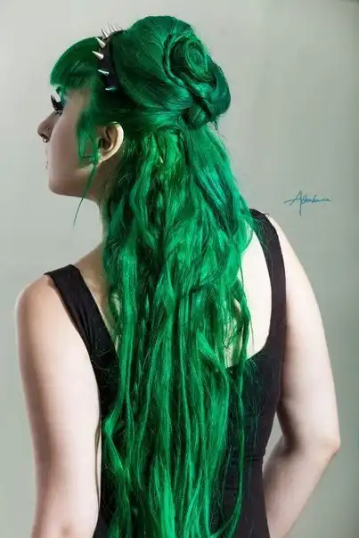 С цветными волосами.