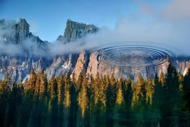 Отражение окружающего ландшафта в озере Карецца, Италия