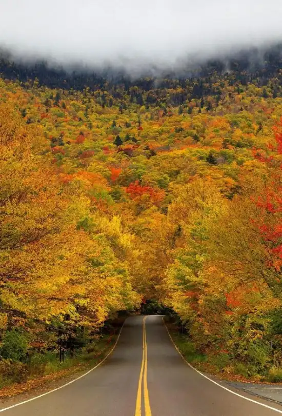 Туннель осенних деревьев в «Ущелье контрабандистов». Вермонтский парк, США