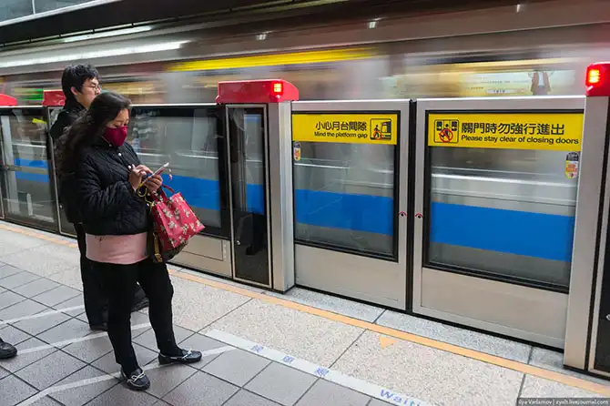Сиденья пластиковые и неудобные. Все станции Тайбэйского метро оснащены эскалаторами и лифтами для пожилых людей и инвалидов