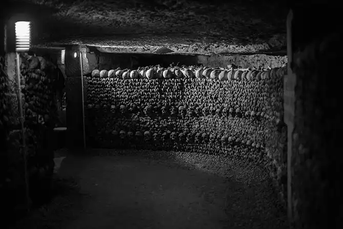 Жуткая череда длинных, мокрых, тёмных и мрачных коридоров ведёт в самую глубь парижских катакомб. 25 метров под землёй. Ниже всех коммуникаций и метро.