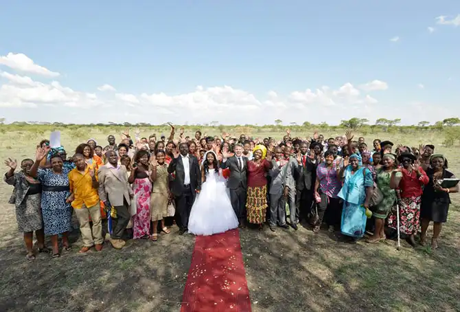 На родине невесты парочка вновь принесла клятвы любви и верности под огромным деревом прямо в саванне, где собрались их родные и близкие. Великолепные пейзажи, слоны, счастливые лица и улыбки и колорит местных особенностей – такую свадьбу запомнишь на всю жизнь!