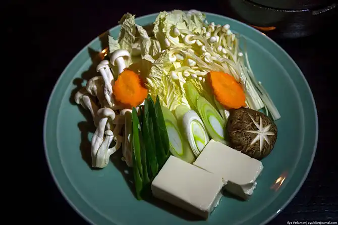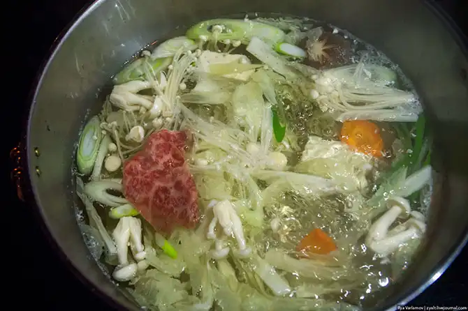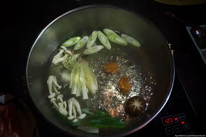 Блюдо называется сябу-сябу. Такой суп, который готовят прямо у тебя на столе.