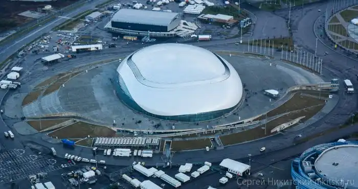 На переднем плане Дворец Зимнего Спорта «Айсберг».