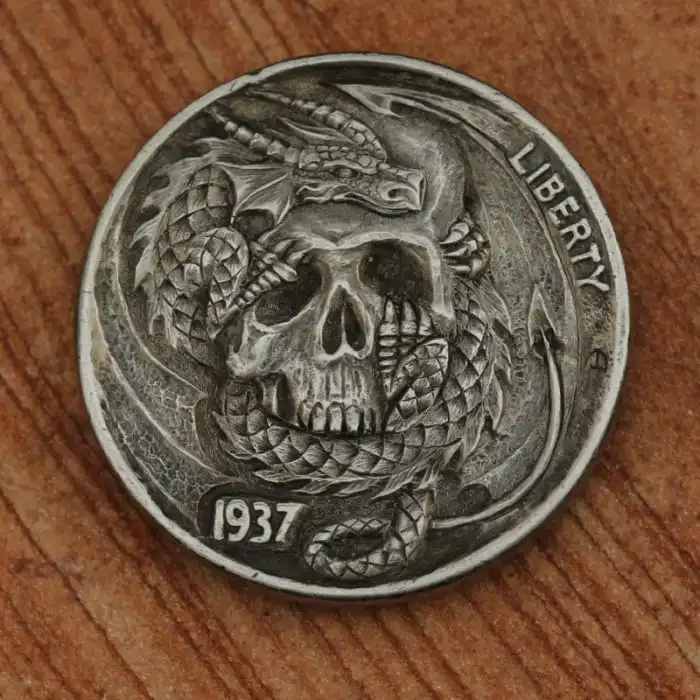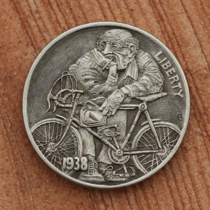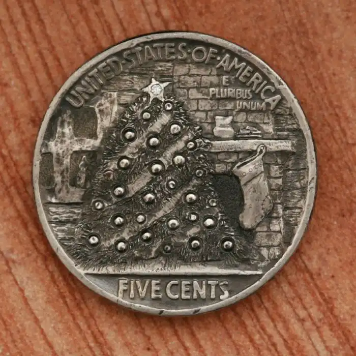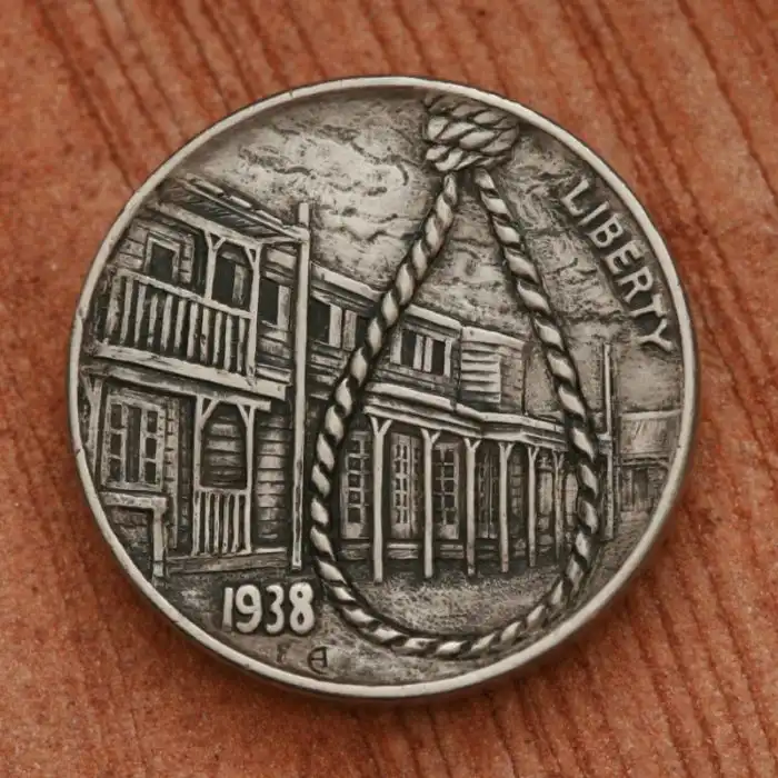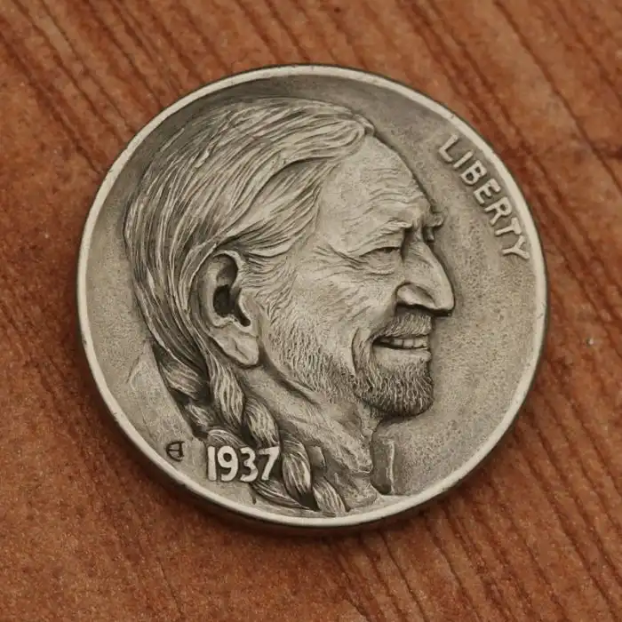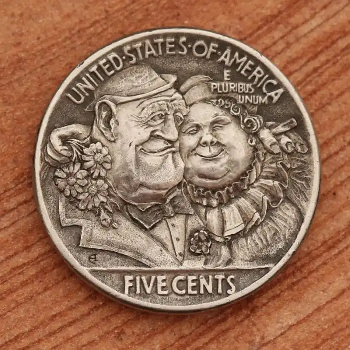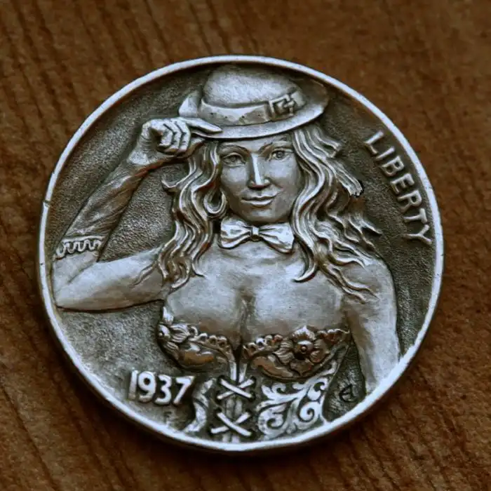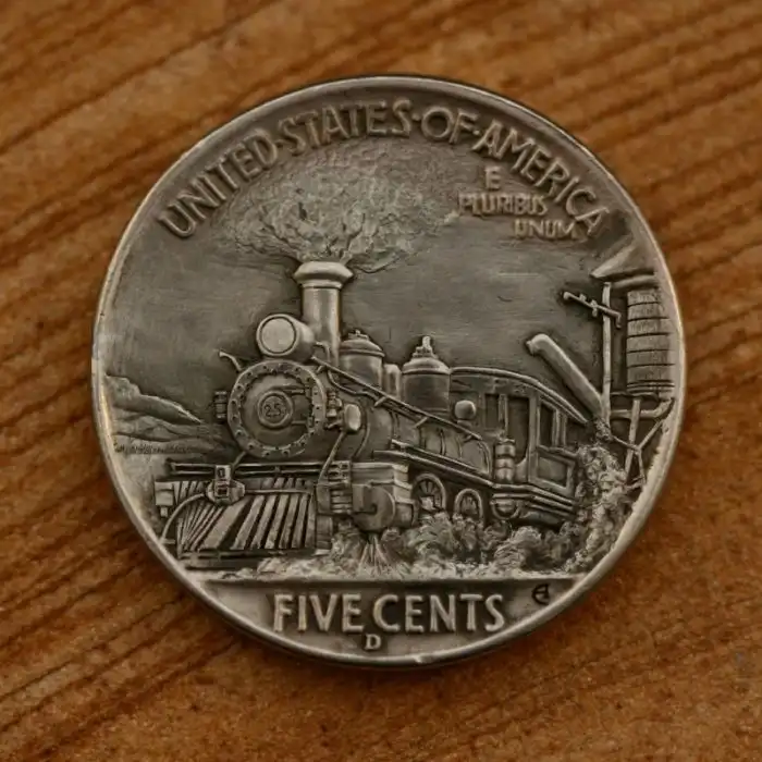 The hobo nickel is a sculptural art form involving the creative modification of small-denomination coins, essentially resulting in miniature bas reliefs. The nickel, because of its size, thickness, and relative softness, was a favored coin for this purpose. However, the term hobo nickel is generic, as carvings have been made from many different denominations.