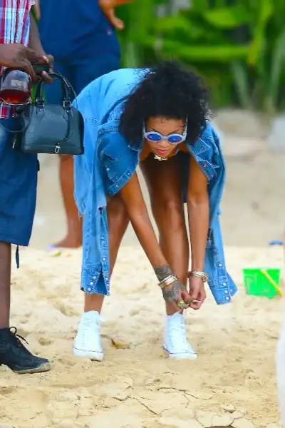 Рианна вчера во время отдыха на Барбадосе.