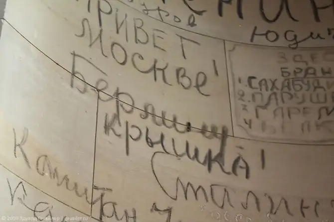 Надписи советских солдат на нижних этажах при реставрации были сохранены.