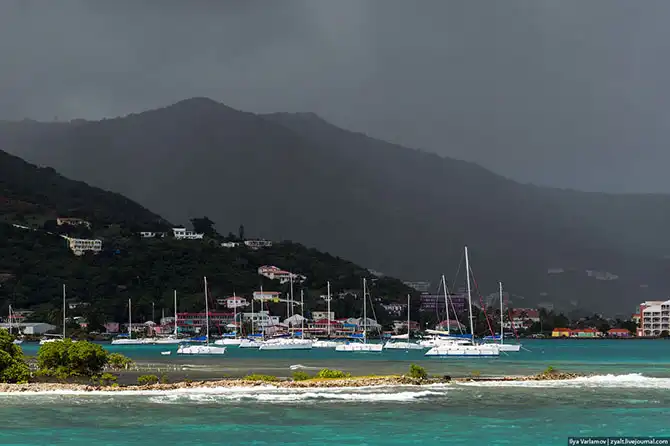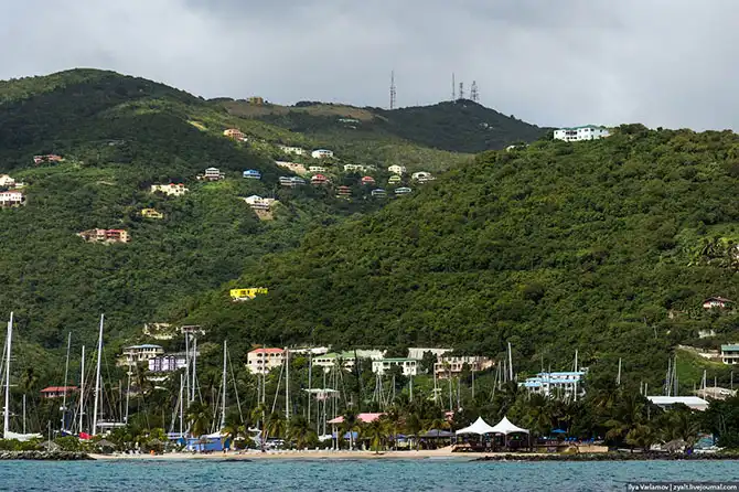 Острова все с крутым рельефом, на котором стоят домики. Живет на БВО 25 000 человек. Такая большая деревня.